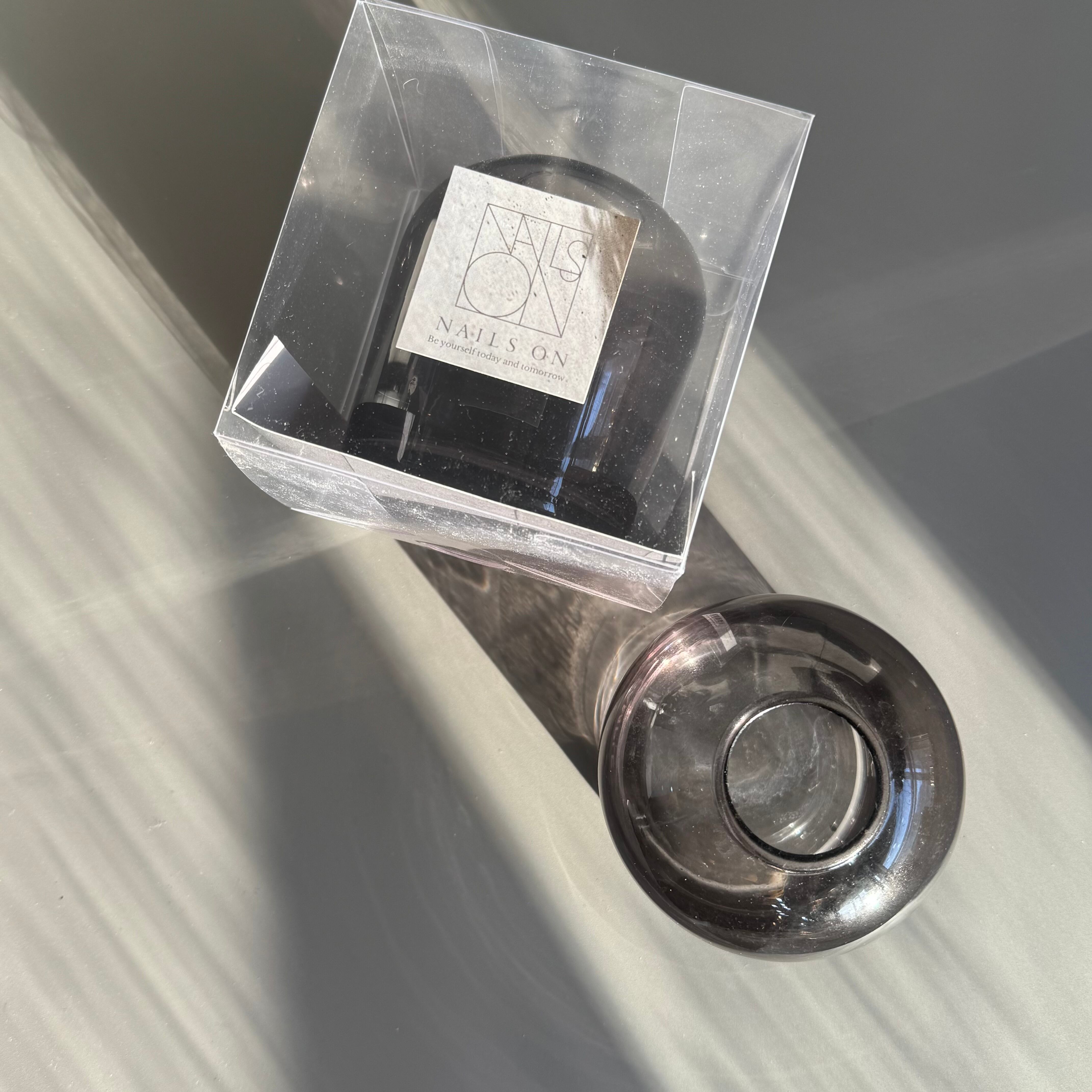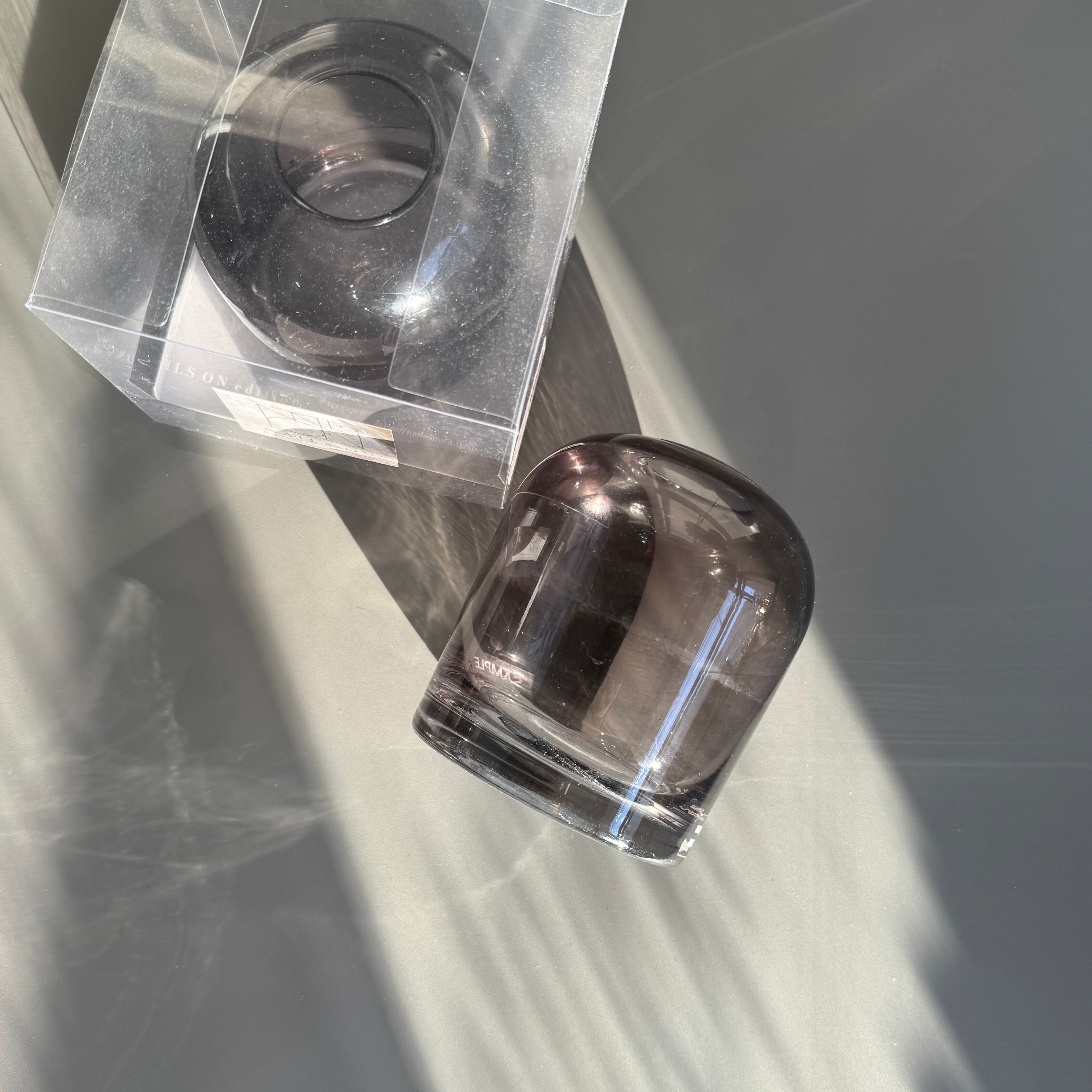 スモーキーブラックのガラス製フラワーベース。