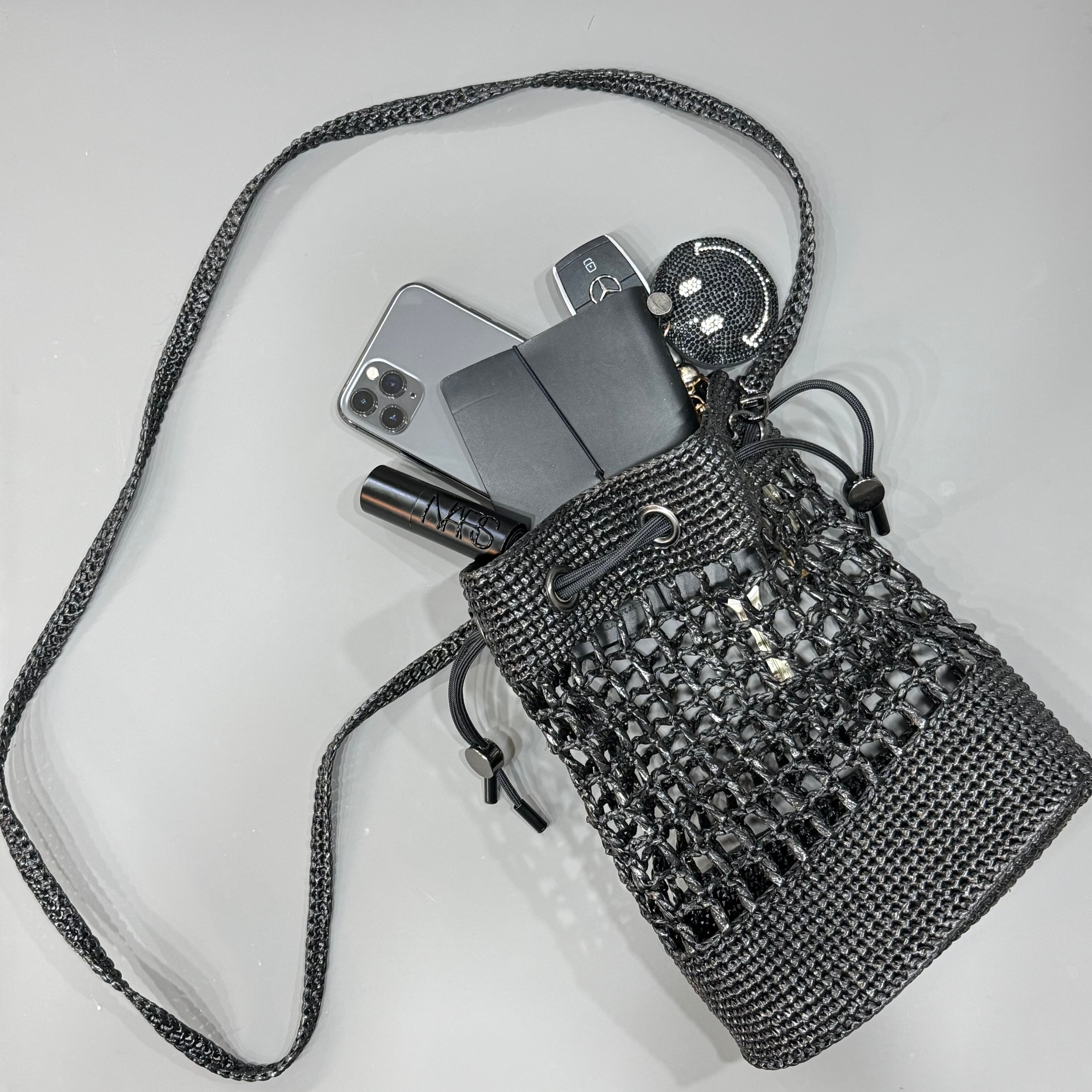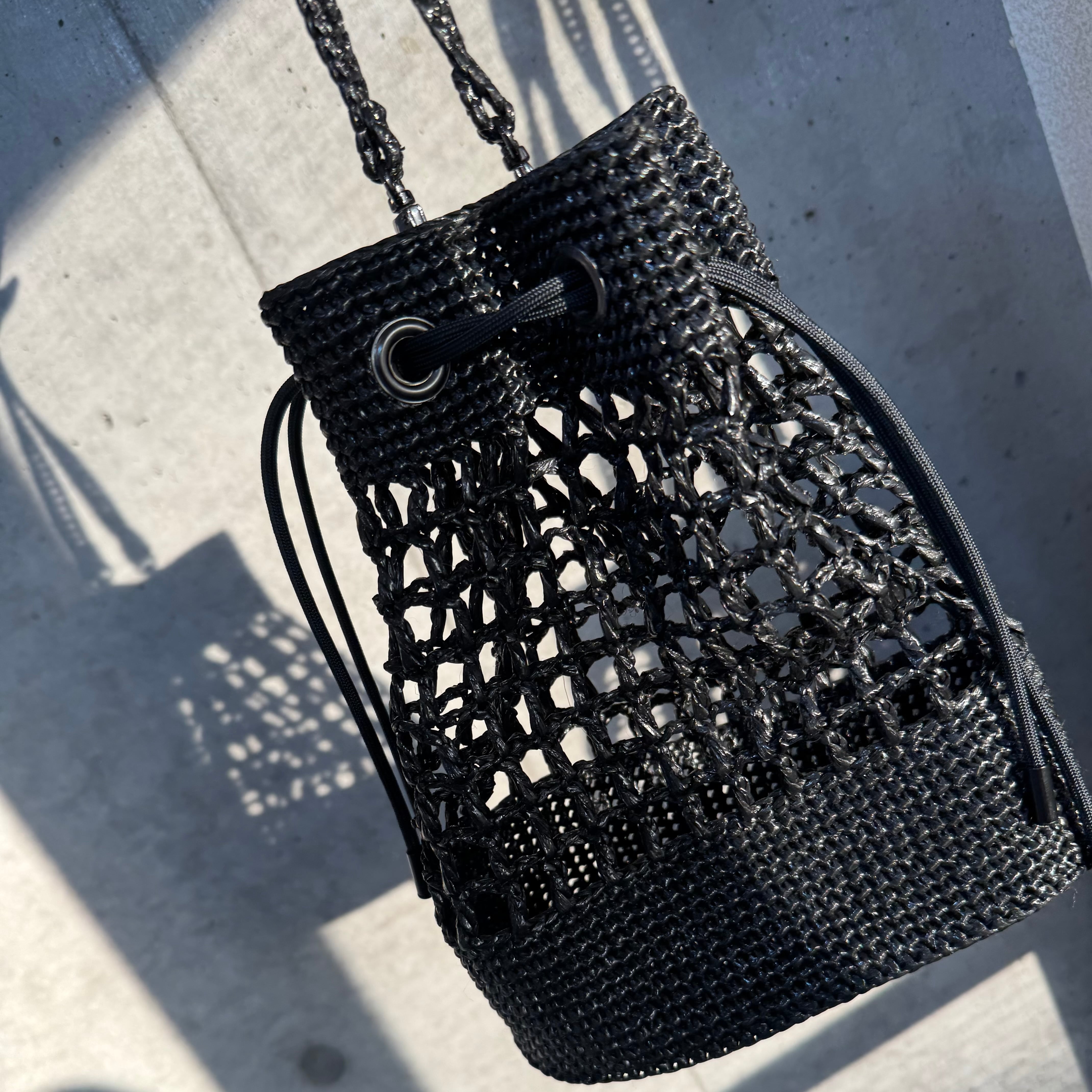 1本のテープを丁寧に裂きながら緻密に編み込むことで、丈夫さとしなやかさを感じられるミニバッグへと昇華させました。