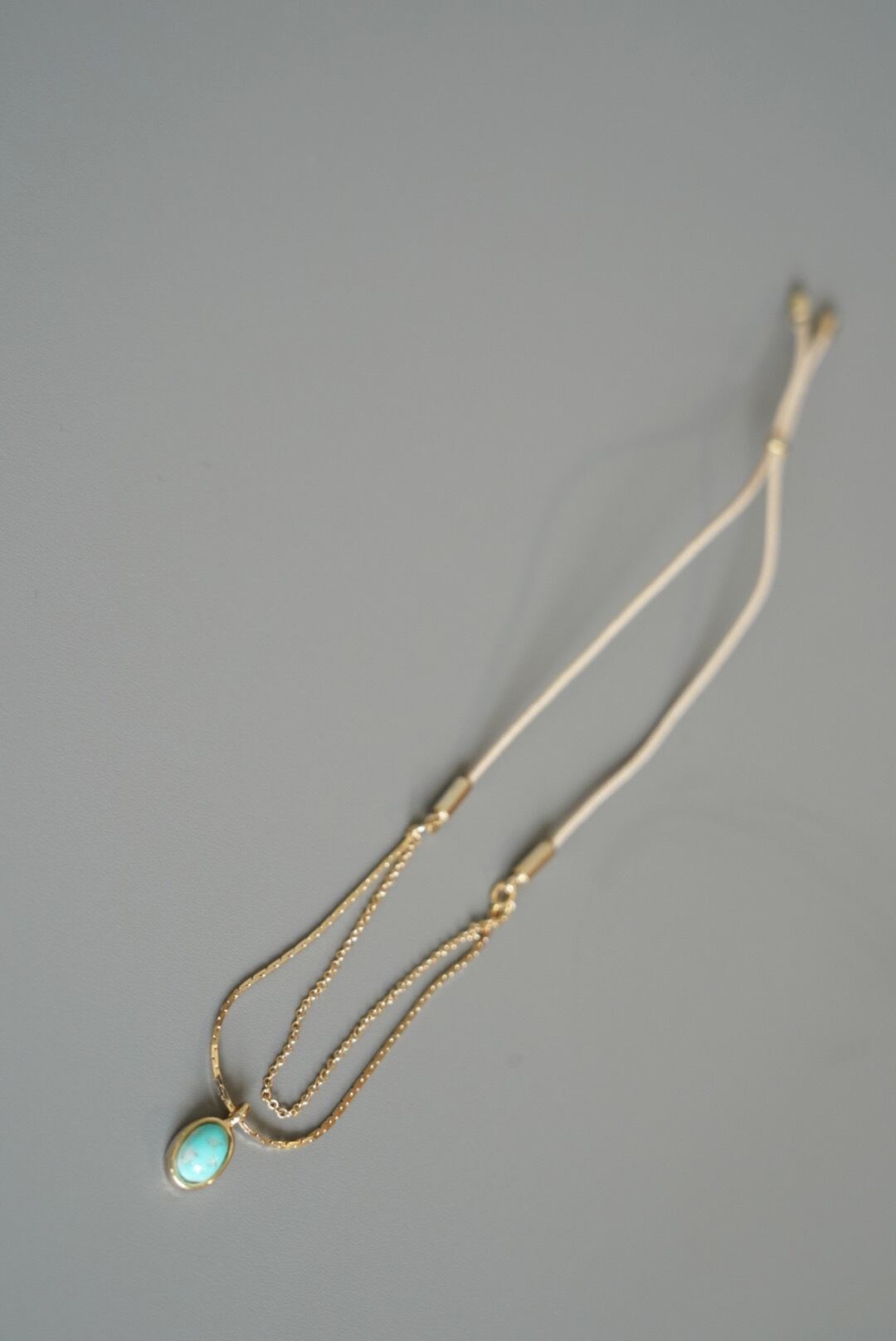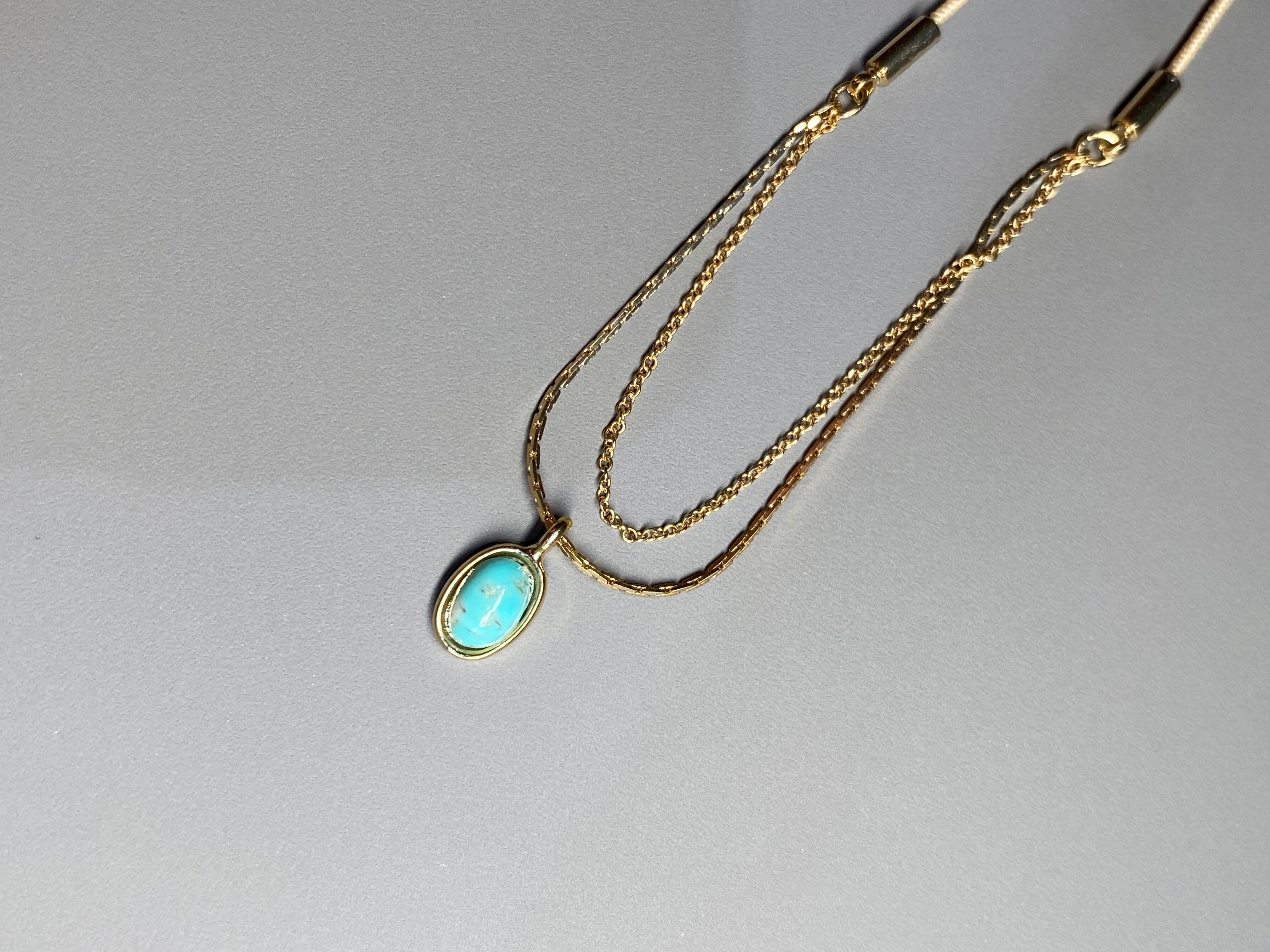 *「ターコイズ色ネリガラス」とは宝石のターコイズ石を加工する際に削られたターコイズをガラスと練り合わせ成型した石になります。