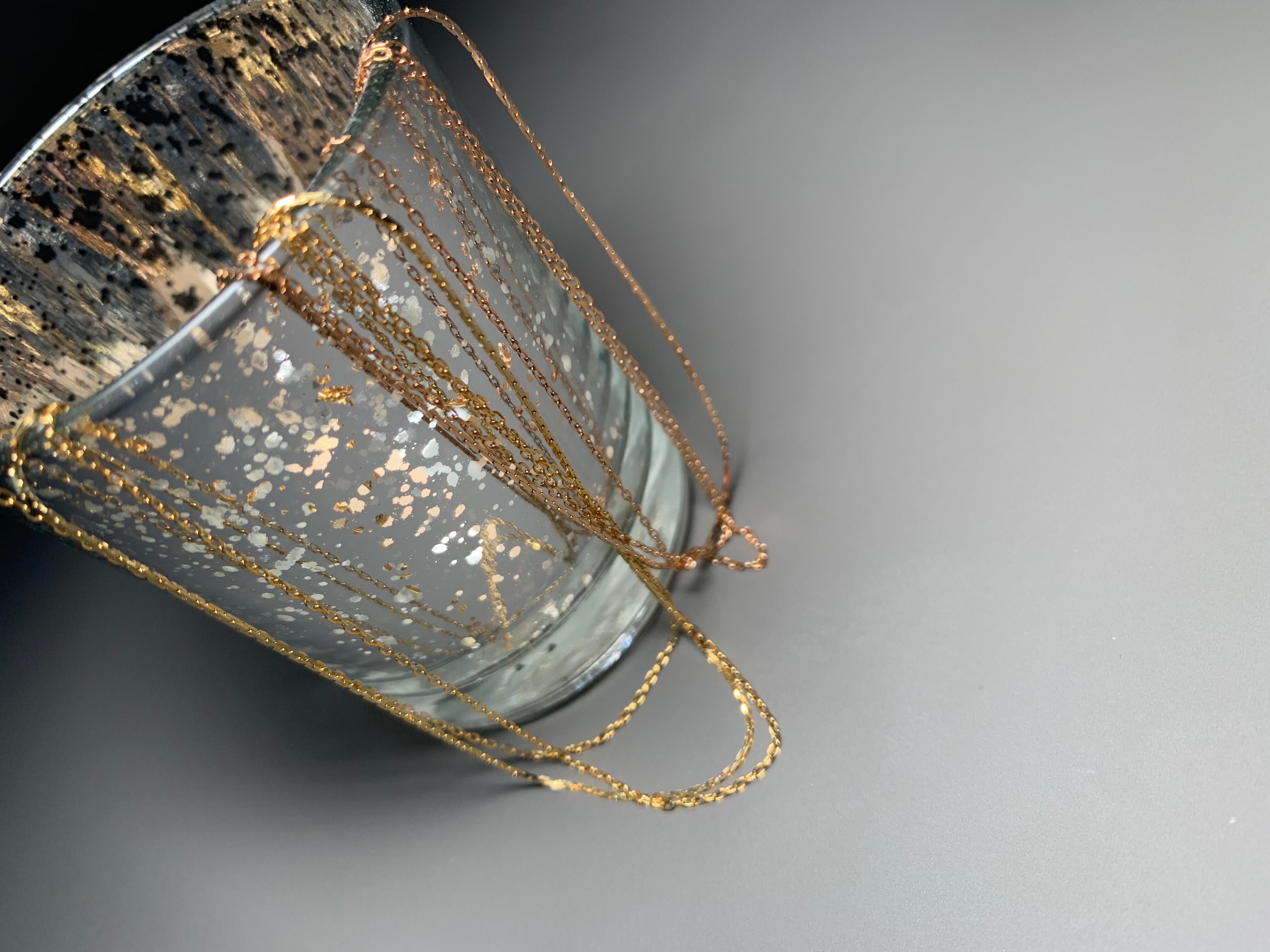 華奢なダイヤカットチェーンが綺麗にドレープして動くたびにキラキラします。