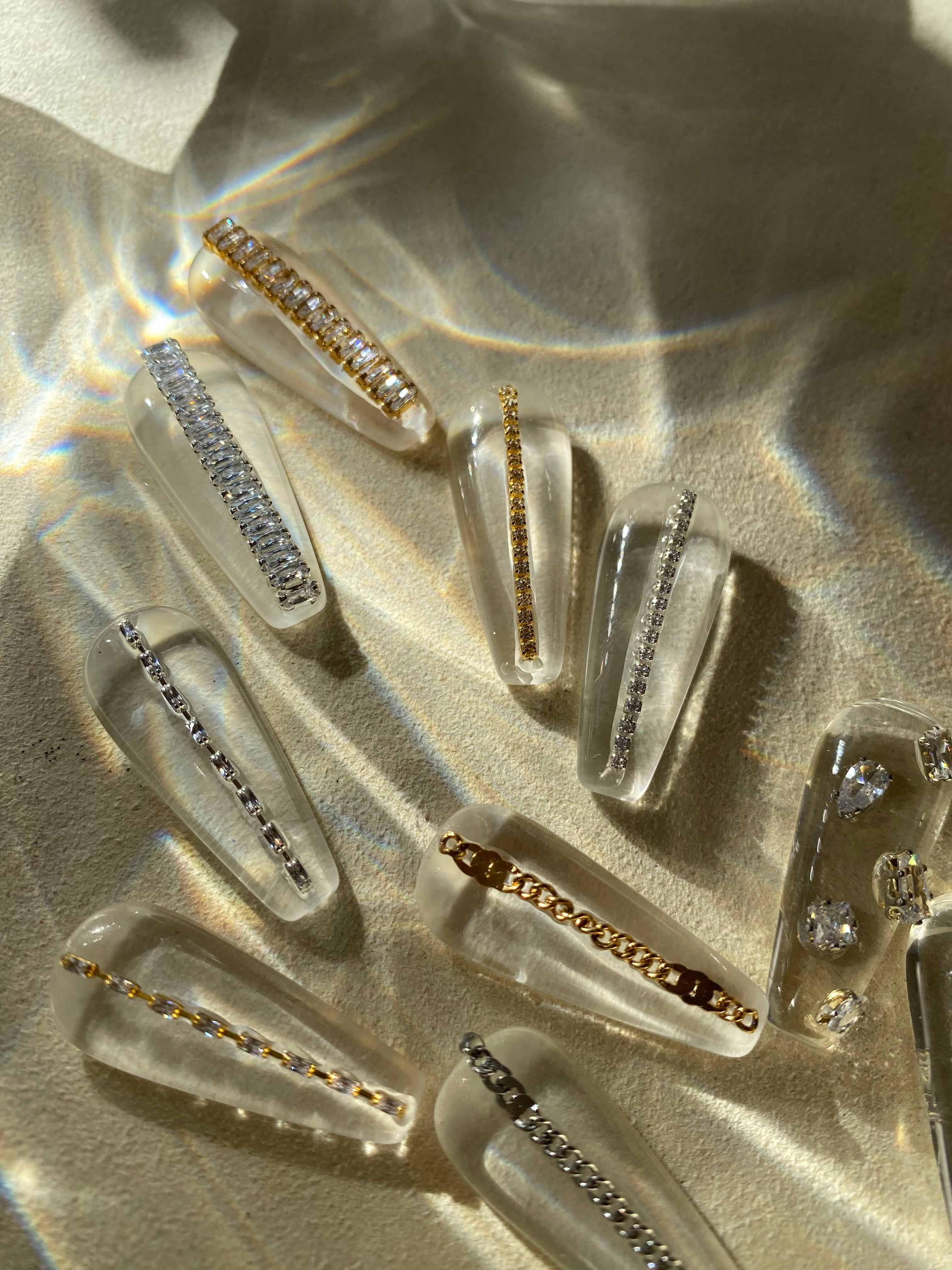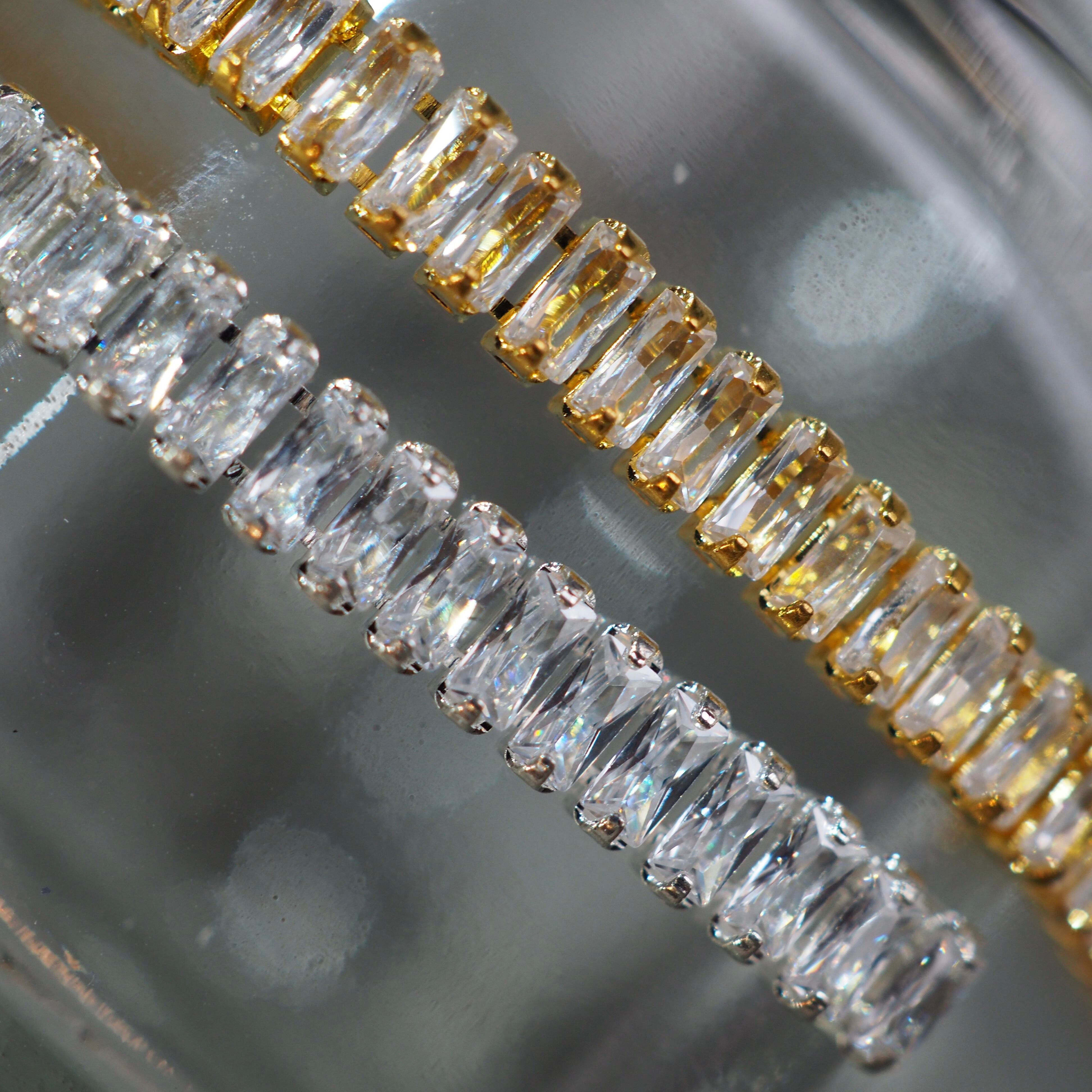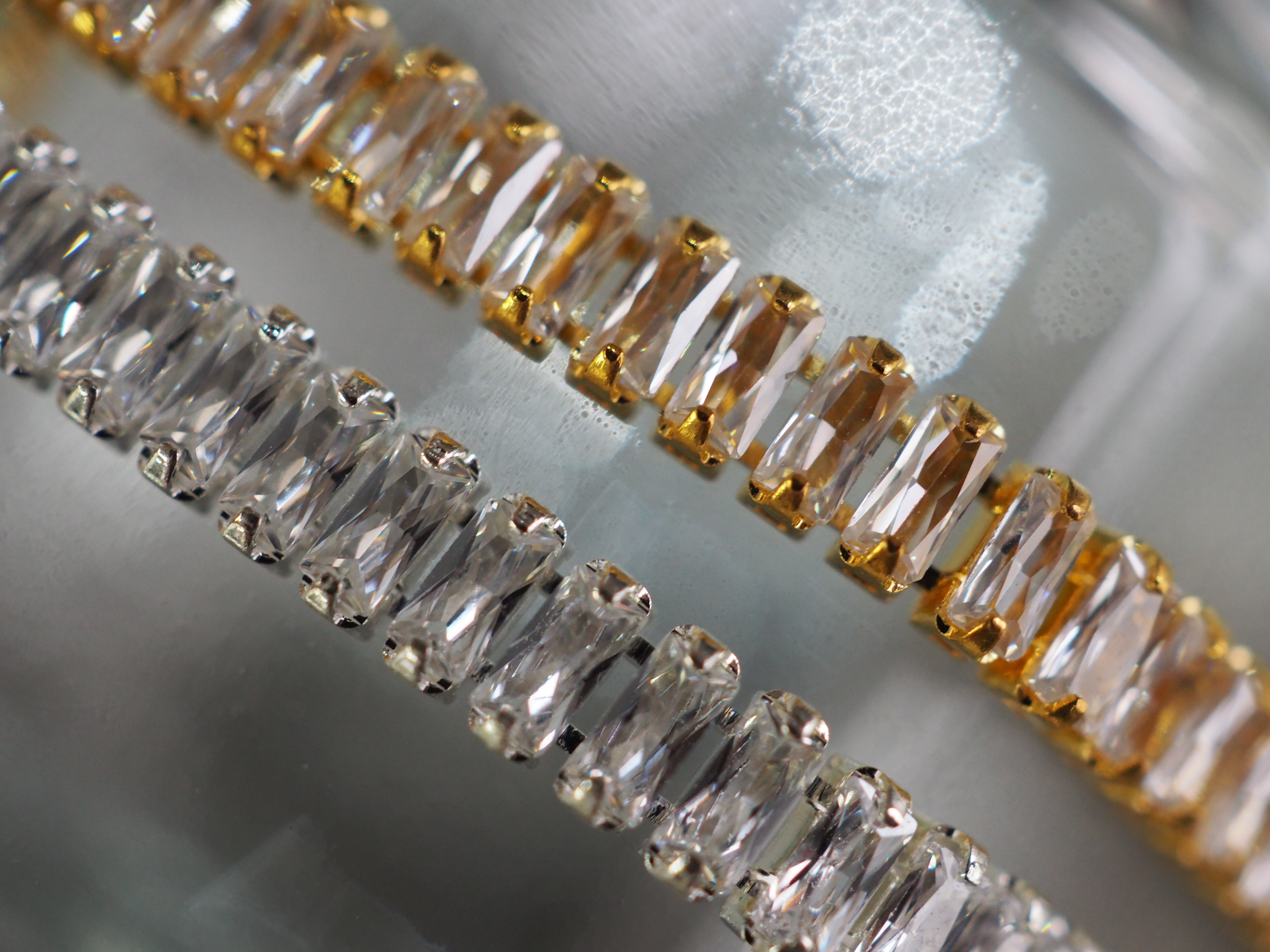 長方方形のクリスタルビジューが連なる華やかなチェーンです。